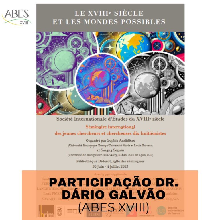 Séminaire international de la SIEDS pour les jeunes dix-huitiémistes: “Le XVIIIe siècle et les mondes possibles” conta com participação do Dr. Dário Galvão